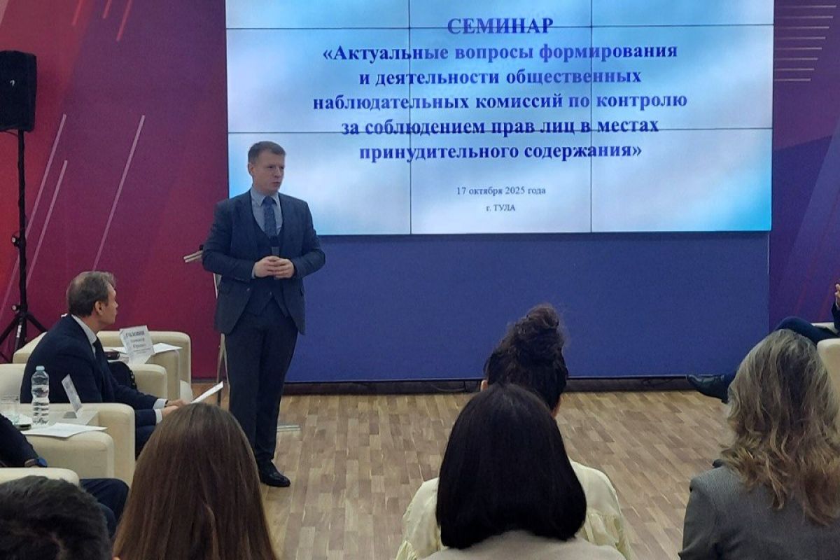 17 октября 2025 года в Туле прошел обучающий семинар на тему «Актуальные вопросы формирования и деятельности общественных наблюдательных комиссий по контролю за соблюдением прав лиц в местах принудительного содержания».