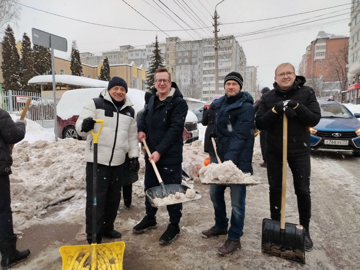 Члены Общественной палаты Тульской области убрали снег на территории Центра образования № 1