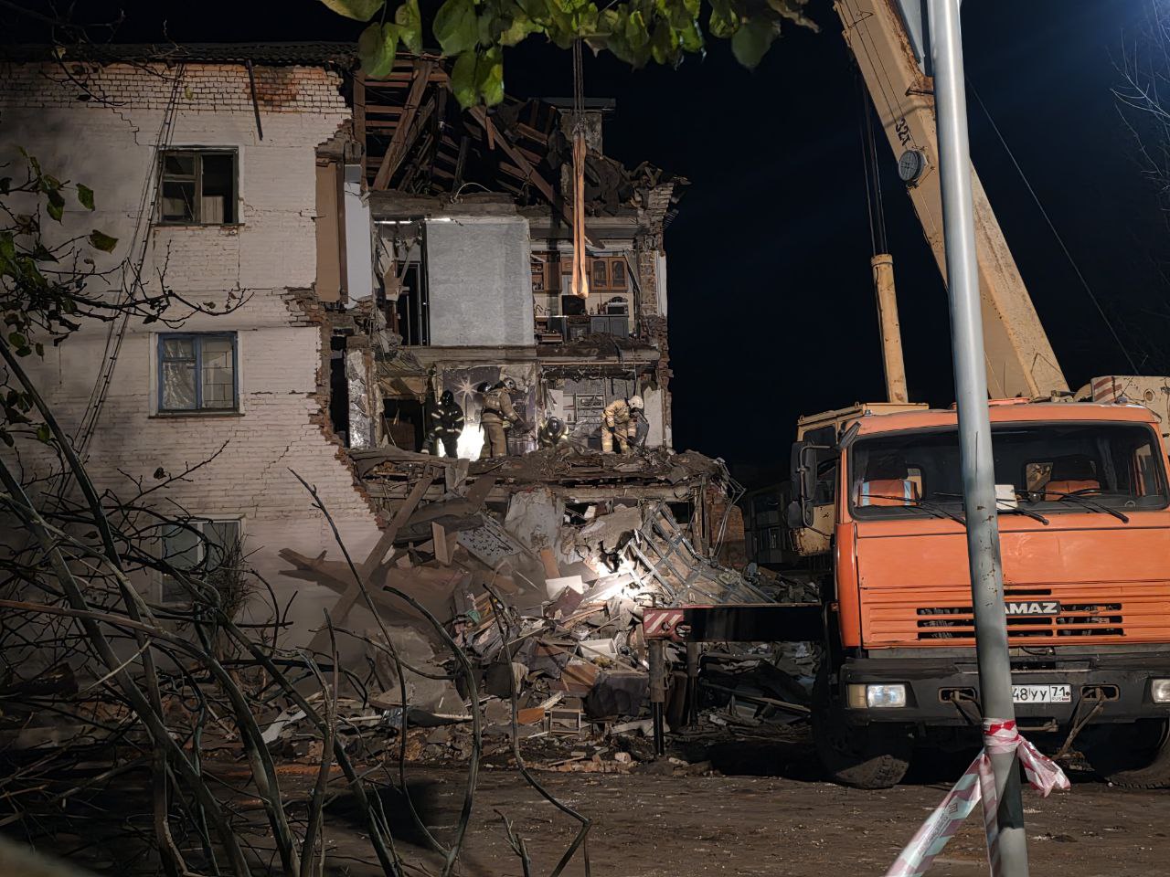 На улице Ленина в посёлке Куркино завершены аварийно-спасательные и поисковые работы на месте частичного обрушения подъезда жилого дома, где утром произошёл взрыв бытового газа.