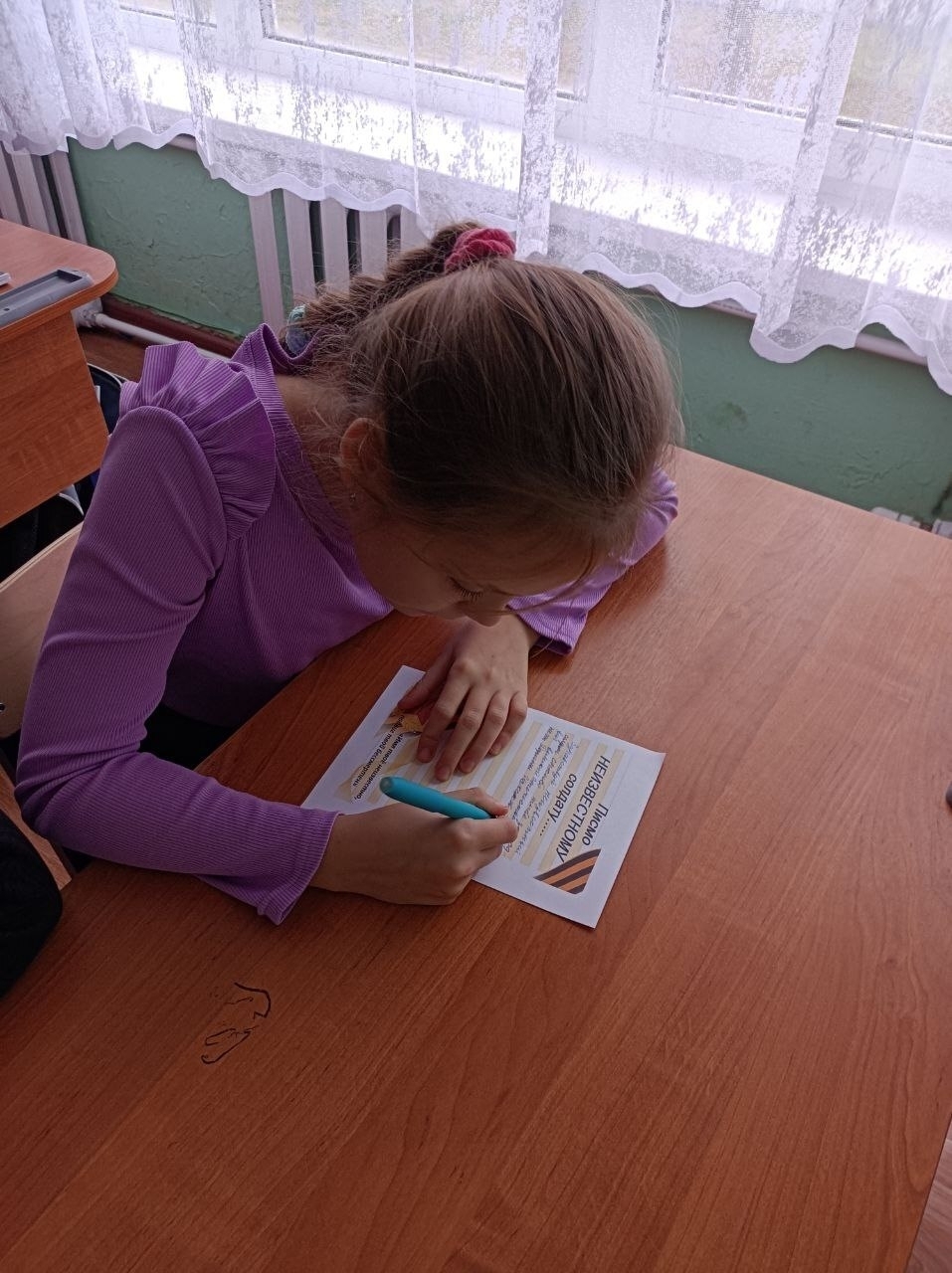 Завершился урок тишиной и письмом. Каждый ученик смог выразить свои мысли в письме Неизвестному Солдату. В этих искренних строчках - не шаблонные фразы, а личная благодарность поколения, которое знает о войне только из книг и рассказов, тем, кто подарил им это знание ценой своей жизни.