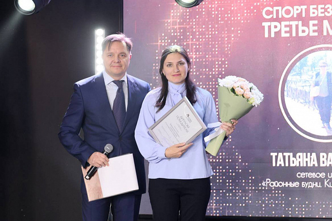 Победителем в номинациия «Спорт без границ» признана корреспондент информационного агентства «Тульская пресса» Александра Антоненко. Награду вручил шеф-редактор, обозреватель, ведущий новостей, комментатор Дирекции спортивного вещания АО «Первый канал» Дмитрий Терехов.