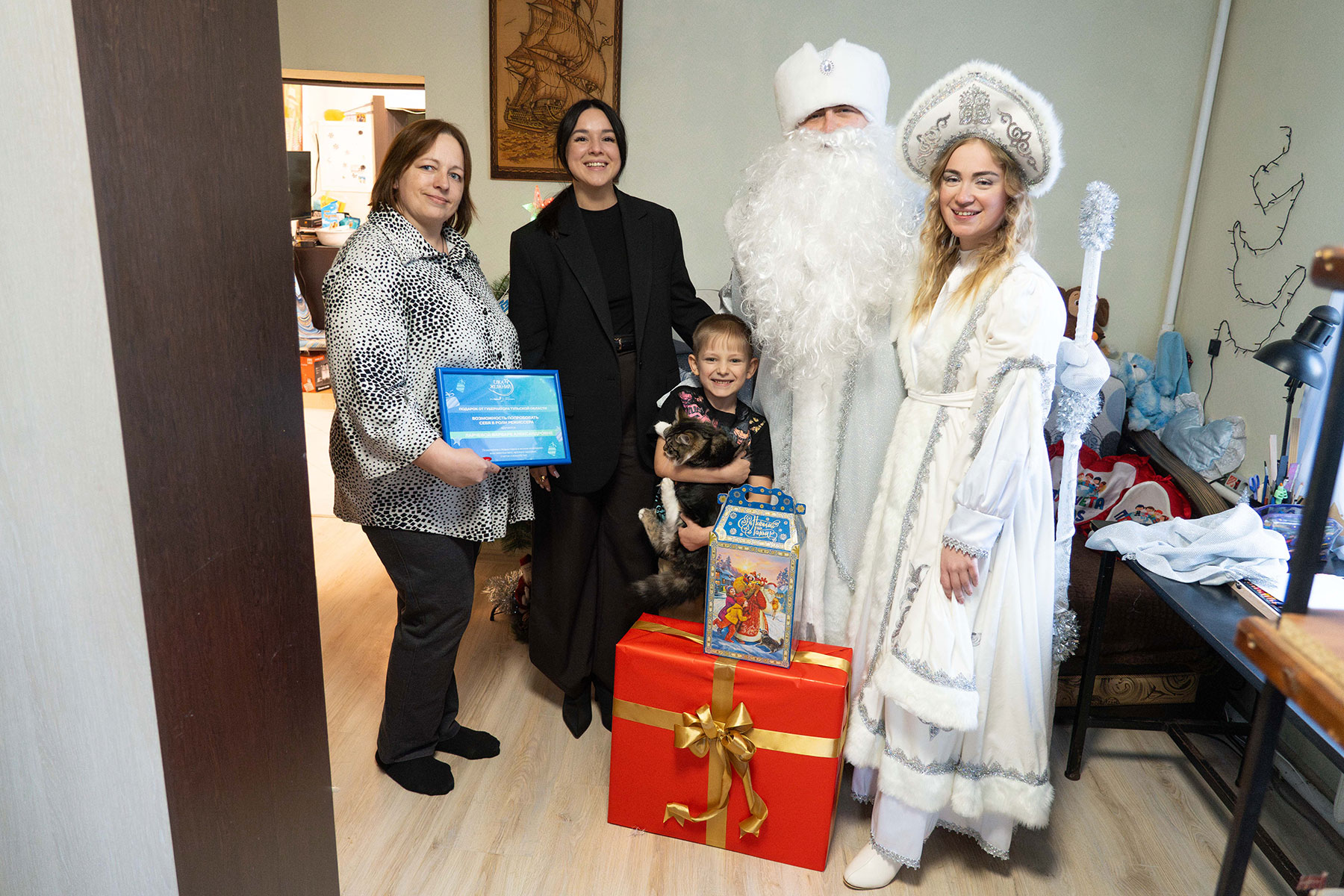 6-летний Ваня получил долгожданный конструктор. Мальчик активно участвует в жизни детского сада: выступает в танцевальном коллективе, играет главные роли в постановках и проявляет интерес к военной технике. Его старшая сестра Варя, которая учится на одни пятерки и побеждает в городских и областных конкурсах, мечтает стать режиссёром. По поручению Губернатора её желание в следующем году будет реализовано.