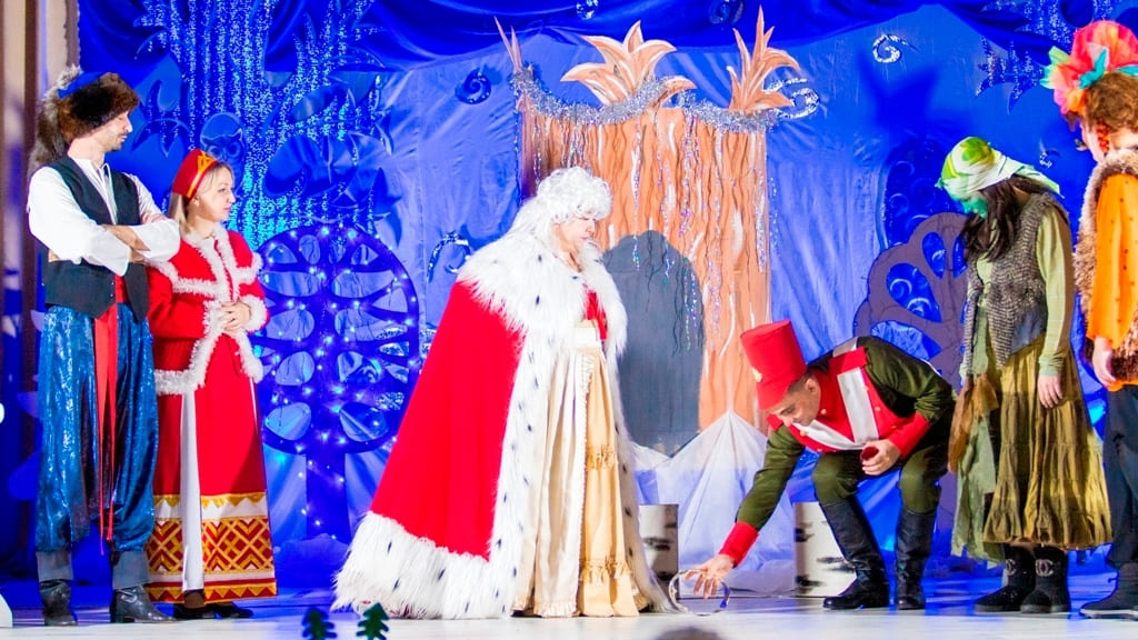 Действие спектакля разворачивалось в сказочном царстве, где жила вредная царица. Она мечтала выдать свою дочь замуж вопреки её желаниям и вместе с лесными разбойниками строила коварные планы. Однако, как и положено новогодним сказкам, добро торжествовало над злом. Каждый персонаж имел свои характерные черты, а красочные костюмы и выразительная игра актёров делали происходящее особенно живым и увлекательным.