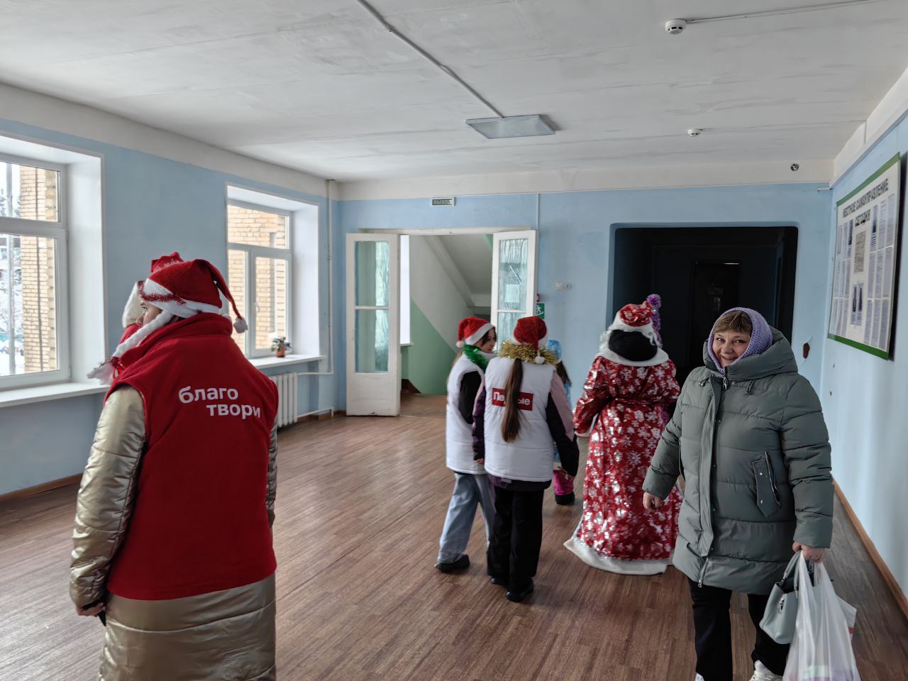 Поздравительный маршрут юных участников проекта оказался гораздо шире. Они уже успели побывать в больнице, полиции, пожарной части, магазинах райцентра — в тех местах, где люди продолжают трудиться даже в праздничные дни. Каждому они старались подарить частичку новогоднего настроения и сказать простое, но такое важное «спасибо» за работу.
