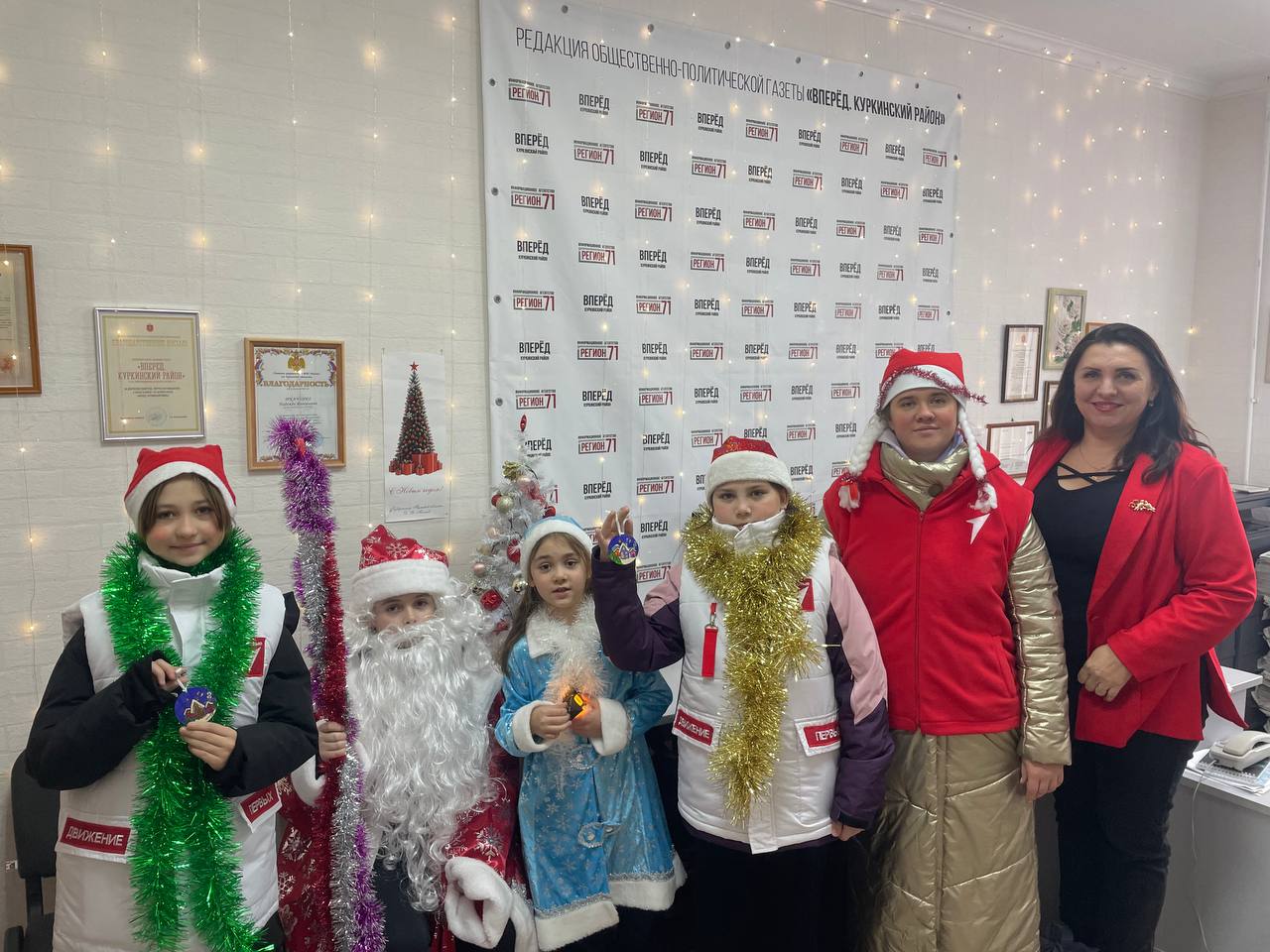 Участники Движения Первых под руководством специалиста по организации работы Движения Первых в Куркинском округе Альбины Ладыгиной и советника по воспитанию в самарской школе Кристины Дудиной поздравили главу администрации Куркинского округа Геннадия Калину с наступающим Новым годом.